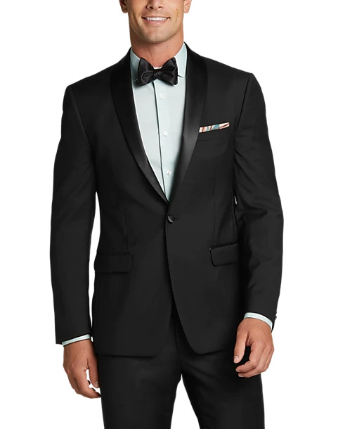 Calvin Klein Slim Fit Satin Shawl Collar Tuxedo Jacket, Black