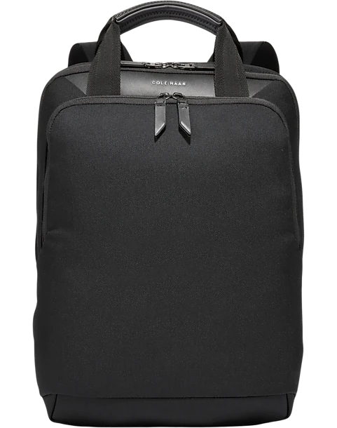Half briefcase, half backpack, this Zerogrand 2-in-1 backpack from Cole Haan serves as a chic, sleek, and super lightweight mobile office. With a main zip compartment that fits up to a 16 laptop it has versatile backpack straps that can be tucked away during the day and two molded leather top handles to comfortably carry in between meetings. It is also an ideal travel companion with felt lining in the mobile pocket a trolly pass that doubles as a side pocket and a streamlined design that easily fits beneath a train or airplane seat.