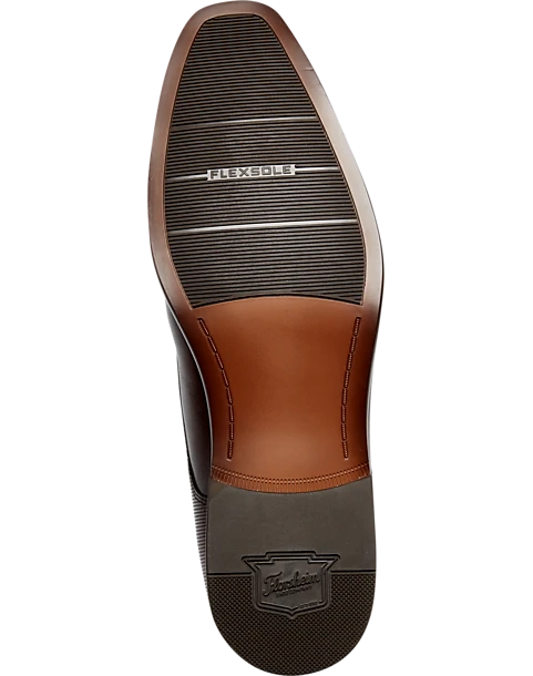 These smooth, understated oxford dress shoes by Florsheim feature polished plain toes and embossed, textured quarters. Sleek and slightly chiseled, the elongated toe gives this shoe a highly sophisticated silhouette. Add to that the contrast of the unique microperf detailed quarters and you have a classic shoe that is sure to turn heads.