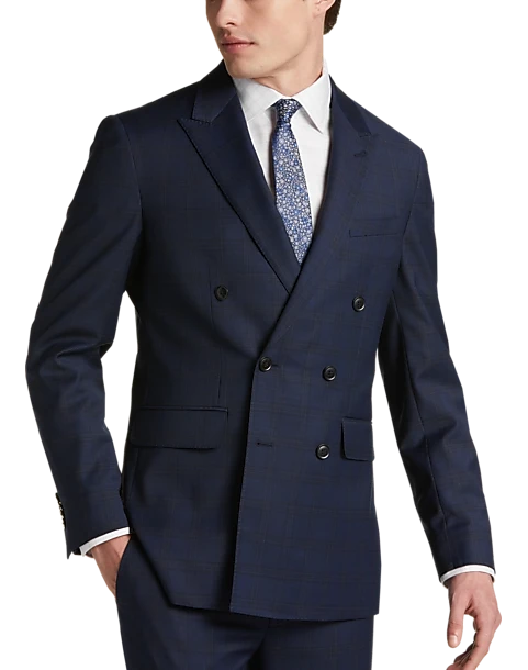 Forever classic, this Slim Fit double-breasted coat features handsome peak lapels in a navy plaid. The coat is 3/8 lined and is part of Suit Separates set that allows you to choose your coat and pants sizes separately for your best fit ever.