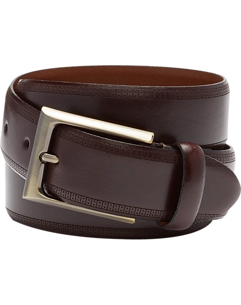 Joseph Abboud Feather Edge Leather Belt, Burgundy