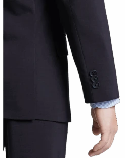 Modern Fit. Two button. Notch lapel. Side vents. Fully lined