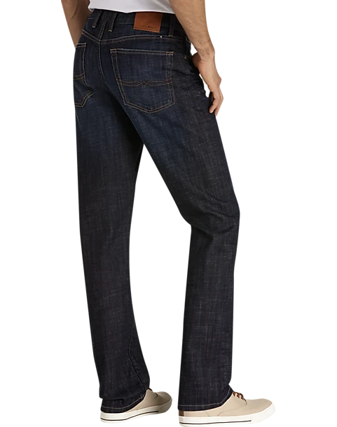 These Lucky Brand jeans feature a dark blue wash with whiskered details and classic five-pocket styling. Contrast stitching throughout and embellished back pockets complete their timeless look.