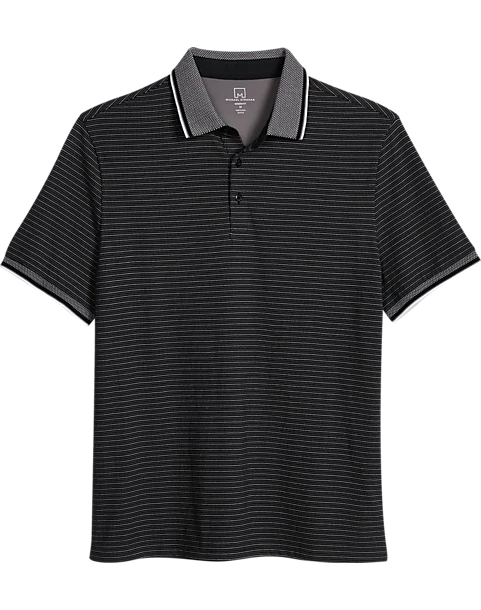 Michael Strahan Modern Fit Short Sleeve Polo, Black Stripe