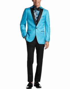 Sharp, stylish and guaranteed to turn heads, this double-breasted jacket from Paisley & Gray is a must for special occasions. It features a satin peak lapel, handkerchief pocket and a modern Slim Fit.