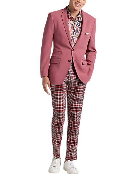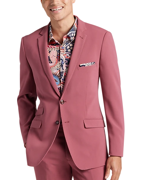 - 74% polyester 24% rayon 2% spandex|Two button|Notch lapel|Side vents|Slim Fit|Coordinating pieces sold separately|Matching Coat: TMW_3XM2_3XM3_07|Paisley & Gray|