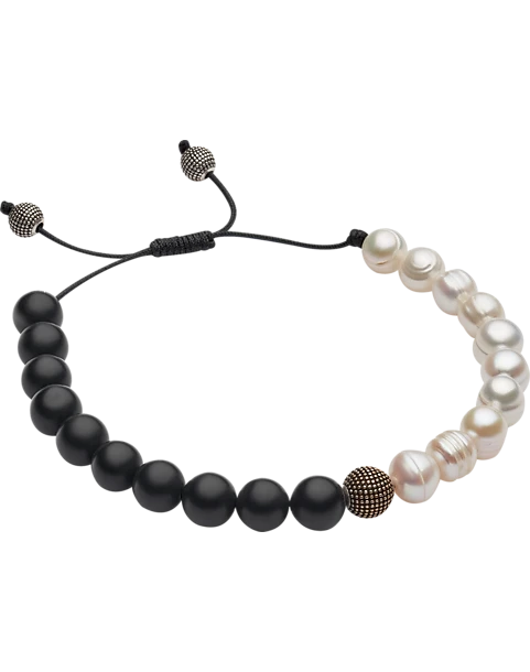 - Genuine black onyx Genuine white freshwater pearls Brass beads|Fully adjustable pull cord|Pronto Uomo|