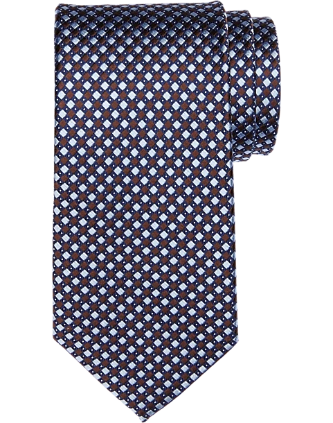 A small-scale diamond pattern in two complementary hues gives this fine silk tie the versatility of a solid color.