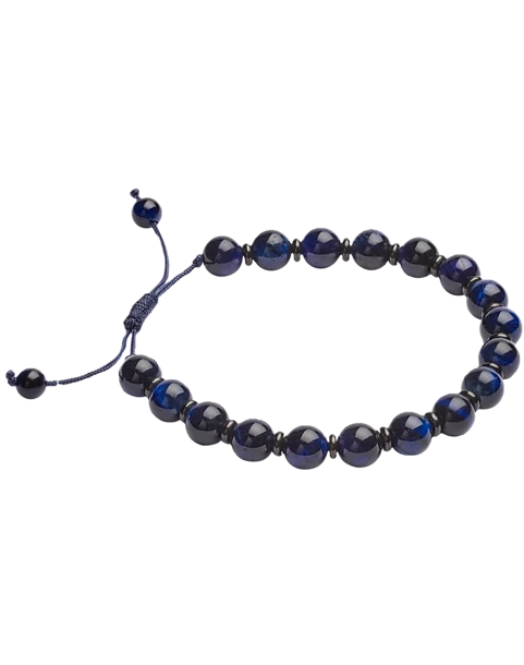 Crafted from smooth blue tiger eye with gunmetal spacer beads, this fully adjustable bracelet makes a handsome gift or addition to your look.